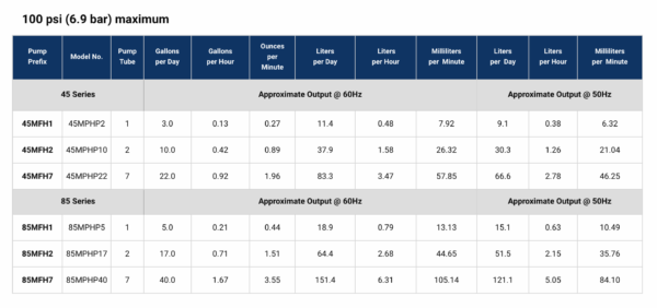 The pump is also a component of Stenner’s pre-assembled panel system the Proportional Injection System. The Proportional Injection System doses solution proportional to a water system’s flow rate based on the water volume. A water meter sends a signal to Stenner’s PCM  which actuates the fixed output pump. The system is suited for constant pressure (variable speed) well pumps, poultry and livestock houses, irrigation and systems with demand based backup wells and any application with varying flow rates.