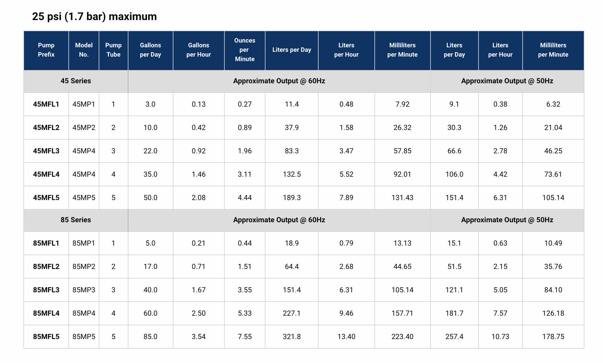 If a pre-assembled system isn’t your preference, the pump, PCM and water meter are also available separately. Refer to the chemical resistance guide to determine the compatibility of the wetted components with the solution you want to pump or contact us.